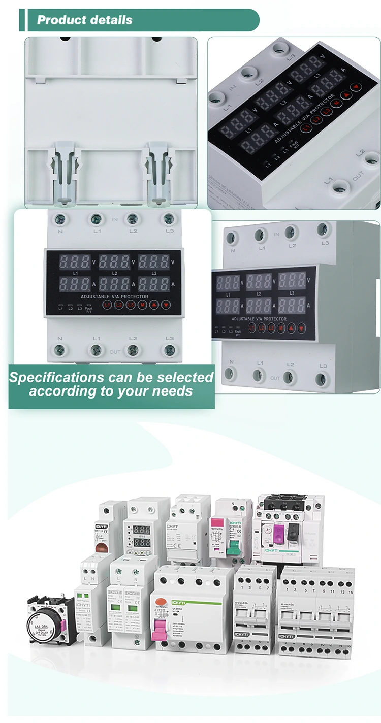 அவை டிஜிட்டல் டிஸ்ப்ளேவுடன் வருகின்றன மற்றும் இறக்குமதி செய்யப்பட்ட மட்டு எலக்ட்ரானிக் கூறுகளைப் பயன்படுத்தி தயாரிக்கப்படுகின்றன, இதனால் அதிக நம்பகத்தன்மை மற்றும் செயல்திறனை வழங்குகிறது. அதிகப்படியான மின்னழுத்தம், குறைந்த மின்னழுத்தம் அல்லது கிரிட் ஏற்ற இறக்கங்கள் போன்ற அசாதாரண மின்னழுத்தங்களின் சமயங்களில், பாதுகாவலர்கள் தானாகவே மற்றும் விரைவாக மின்சக்தியை துண்டித்து, பின்னர் மின்னழுத்தம் இயல்பு நிலைக்கு திரும்பியவுடன் அதை மீட்டெடுக்க முடியும்.