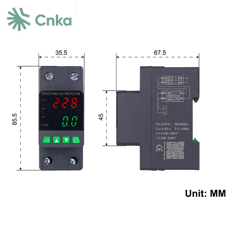சி.என்.கே.ஏ என்பது நன்கு அறியப்பட்ட சீன சப்ளையர், இது அதன் பிராண்டின் இரட்டை காட்சி மின்னழுத்த பாதுகாப்பாளரின் மொத்த விற்பனையை வழங்குகிறது. இந்த சாதனங்கள் குறிப்பாக ஒற்றை-கட்ட ஏசி 220 வி, 50 ஹெர்ட்ஸ் சுற்றுகள் 63 ஏ என மதிப்பிடப்பட்ட மின்னோட்டத்துடன் வடிவமைக்கப்பட்டுள்ளன, இது குடியிருப்பு விநியோக பெட்டிகள் அல்லது ஒற்றை கட்ட உபகரணங்களுக்கு மின்சாரம் வழங்கும் கம்பிகளைப் பாதுகாப்பதற்கான சிறந்த தேர்வாக அமைகிறது.